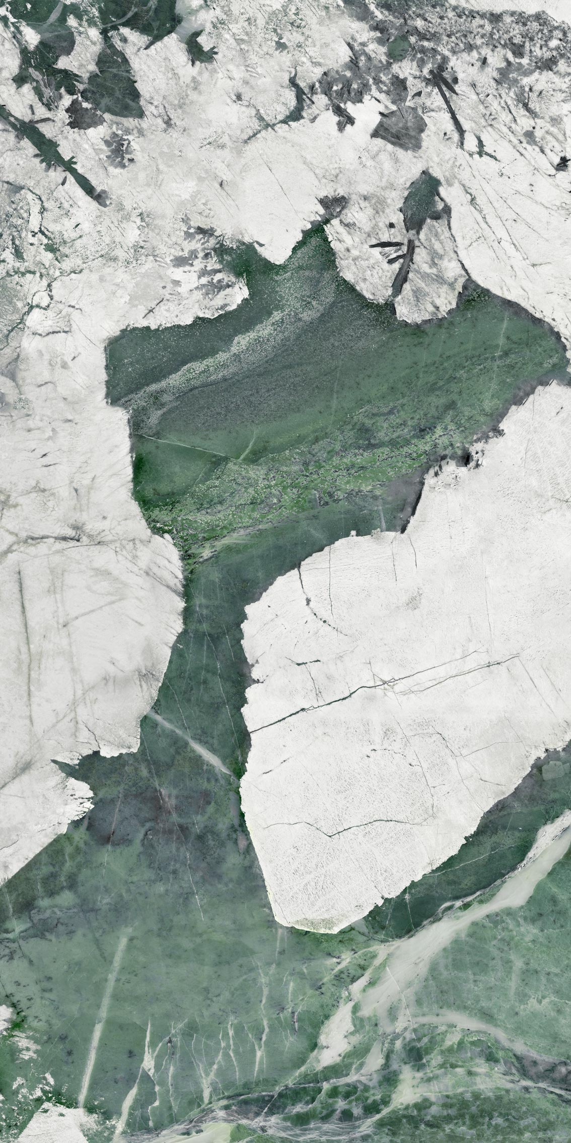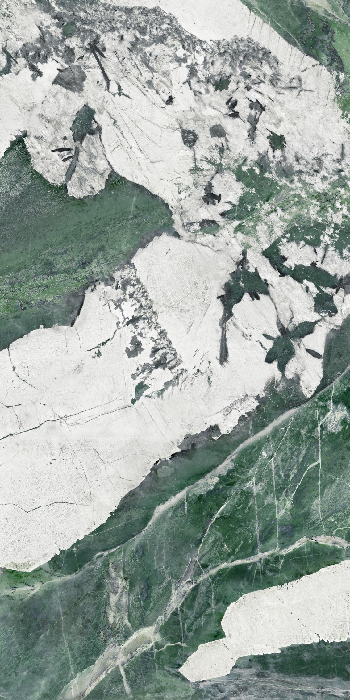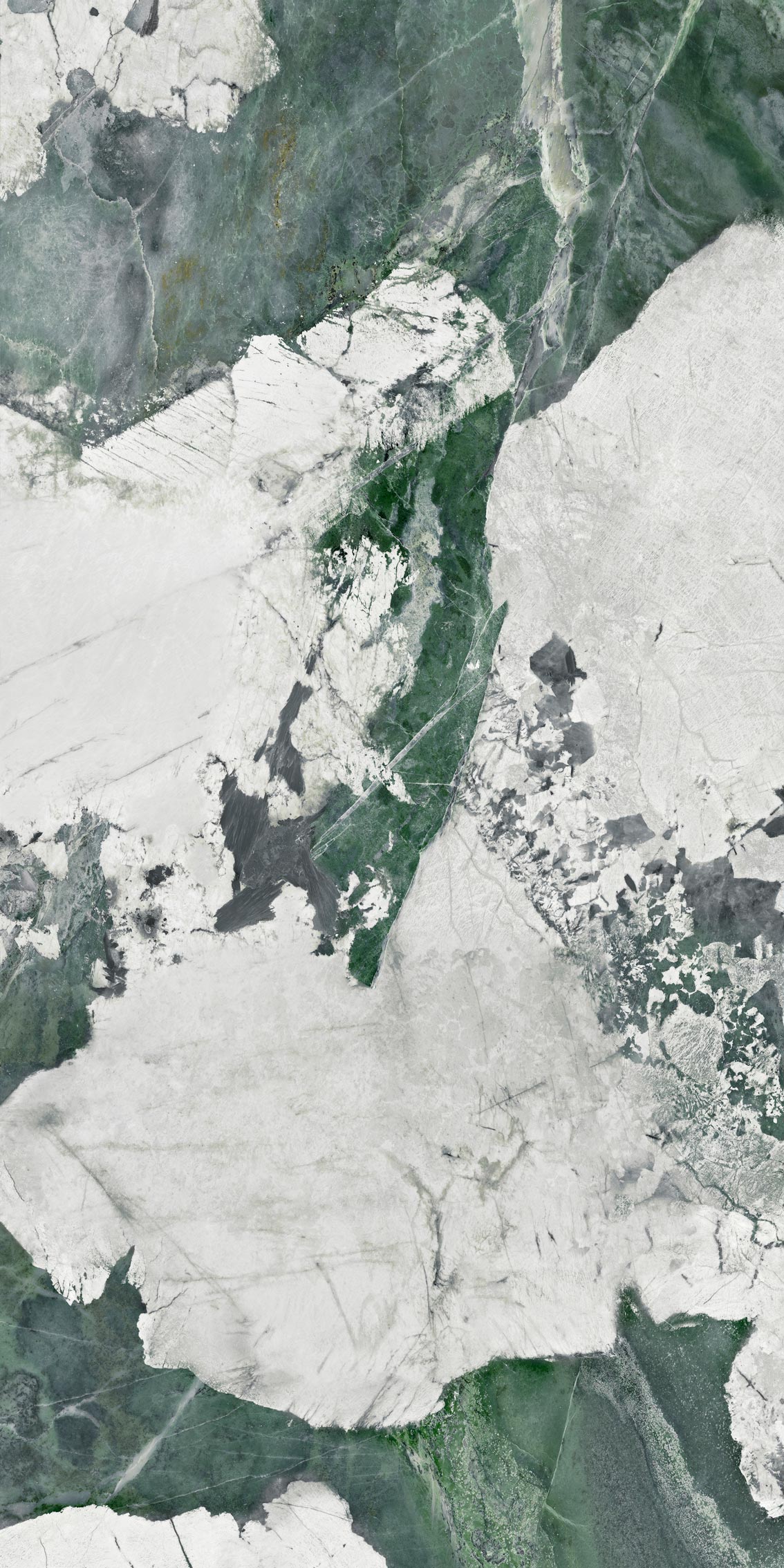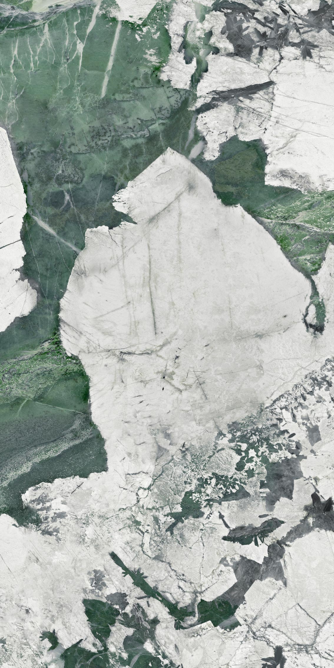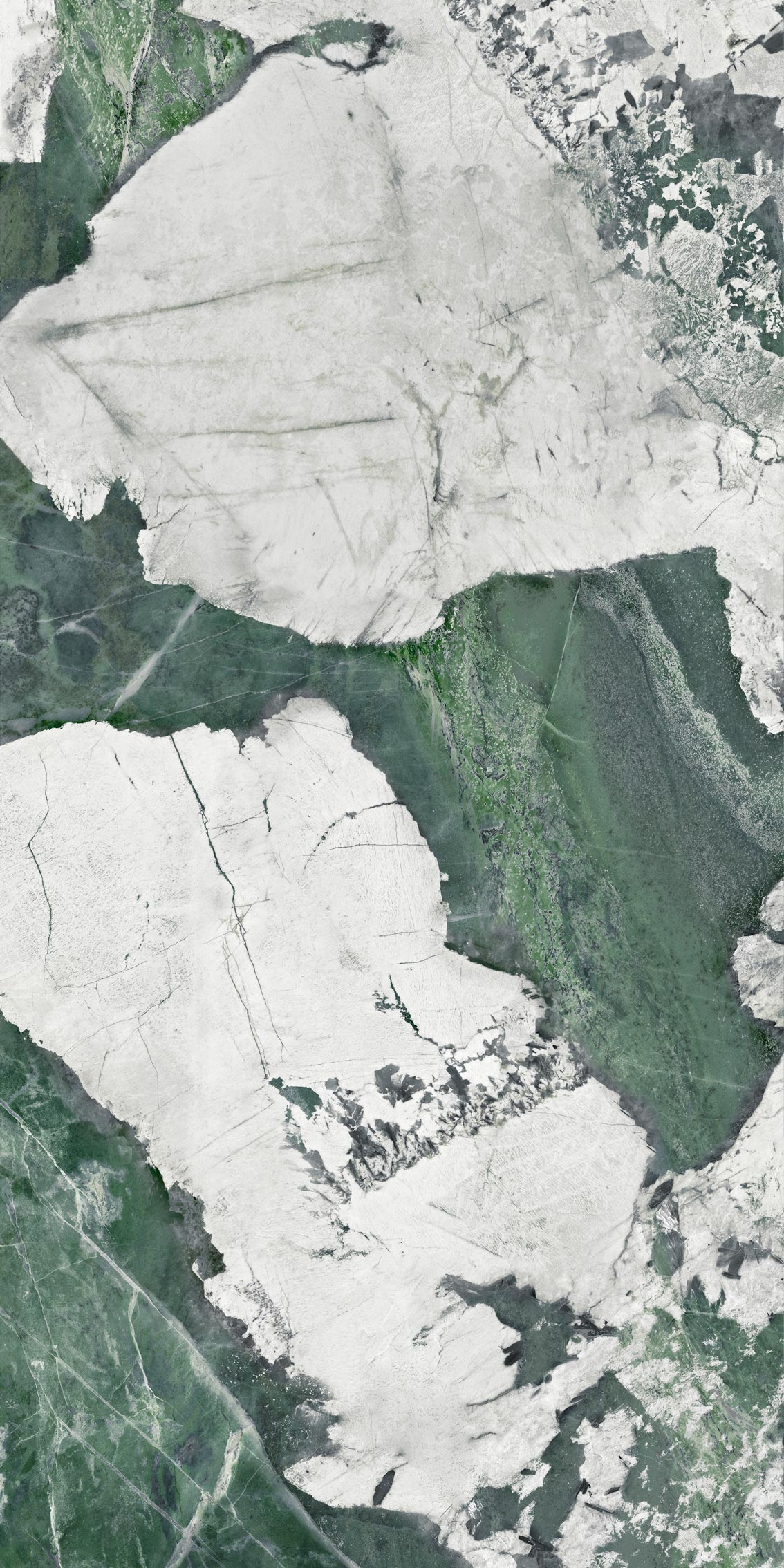 Керамогранит Esmeralda – это модный сейчас в Европе кварцит типа Патагония; причём его редкий зелёный подвид. Патагония добывается в Бразилии и, в силу активного сочетания белых и зелёных оттенков, может стать прекрасным акцентным решением в любом интерьере. Благодаря новому типу поверхности – супер сатин – плита не только визуально привлекательна, но и невероятно приятна тактильно. Не напрасно этот эффект также называют «Baby skin», ведь мягкая бархатистая поверхность на ощупь такая же мягкая, как кожа ребенка.