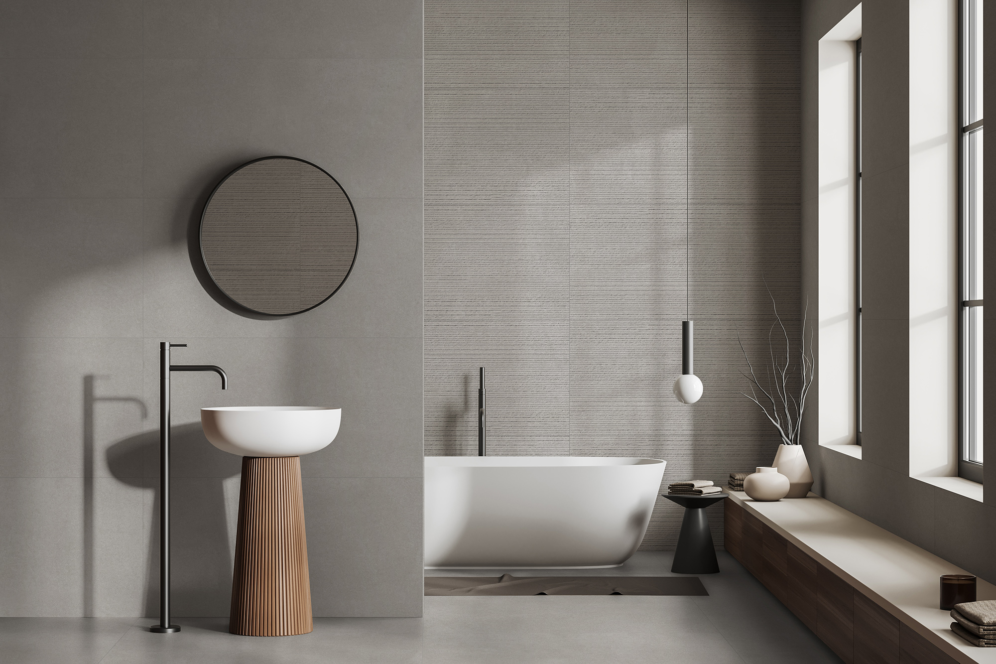 Коллекция керамогранита Harmony представлена в четырех оттенках: серо-бежевом, терракотовом и светло-бежевом и белом. Эффектная фактура «под бетон» идеально подходит для оформления пространств в трендовых стилях лофт, гранж и индастриал. Неоднородная текстура бетона выглядит эффектнее благодаря декору, дополненному рельефом в виде аккуратных полос. Плиты базовых цветов можно сочетать между собой или с более яркими контрастными материалами, а также комбинировать с текстурами под дерево или камень, чтобы создать оригинальный интерьер, наполненный личными эмоциями.