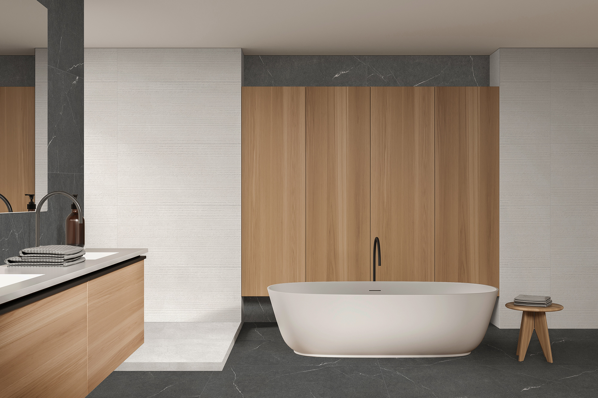 Коллекция керамогранита Harmony представлена в четырех оттенках: серо-бежевом, терракотовом и светло-бежевом и белом. Эффектная фактура «под бетон» идеально подходит для оформления пространств в трендовых стилях лофт, гранж и индастриал. Неоднородная текстура бетона выглядит эффектнее благодаря декору, дополненному рельефом в виде аккуратных полос. Плиты базовых цветов можно сочетать между собой или с более яркими контрастными материалами, а также комбинировать с текстурами под дерево или камень, чтобы создать оригинальный интерьер, наполненный личными эмоциями.