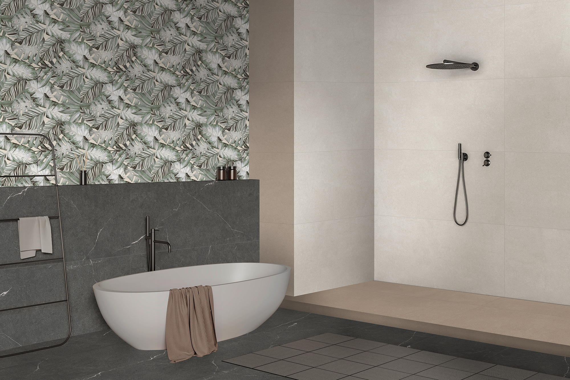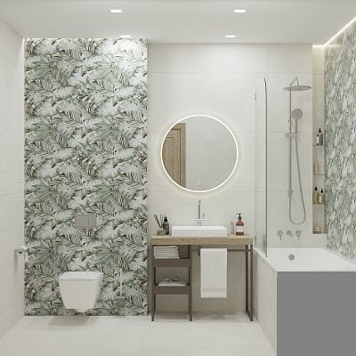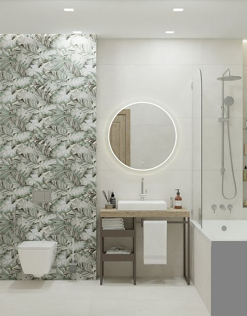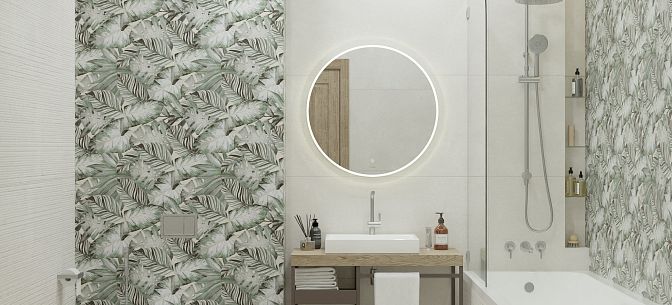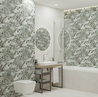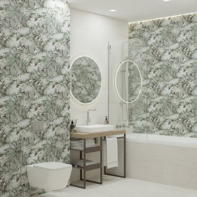 Тренд на ботанику в интерьере продолжает набирать популярность, особенно востребованы отделочные материалы с изображениями тропических растений. Коллекция керамогранита Tropical – это спокойные цветовые решения, где принт в виде крупных пальмовых ветвей создает атмосферу уюта и отдыха, как на райском острове. Благодаря сочным оттенкам от светло-зеленого до изумрудного, пространство будто наполняется воздухом. Это идеальный выбор для оформления ванной, кухни или спальни, где пальмовые листья будут выглядеть особенно гармонично и стильно.