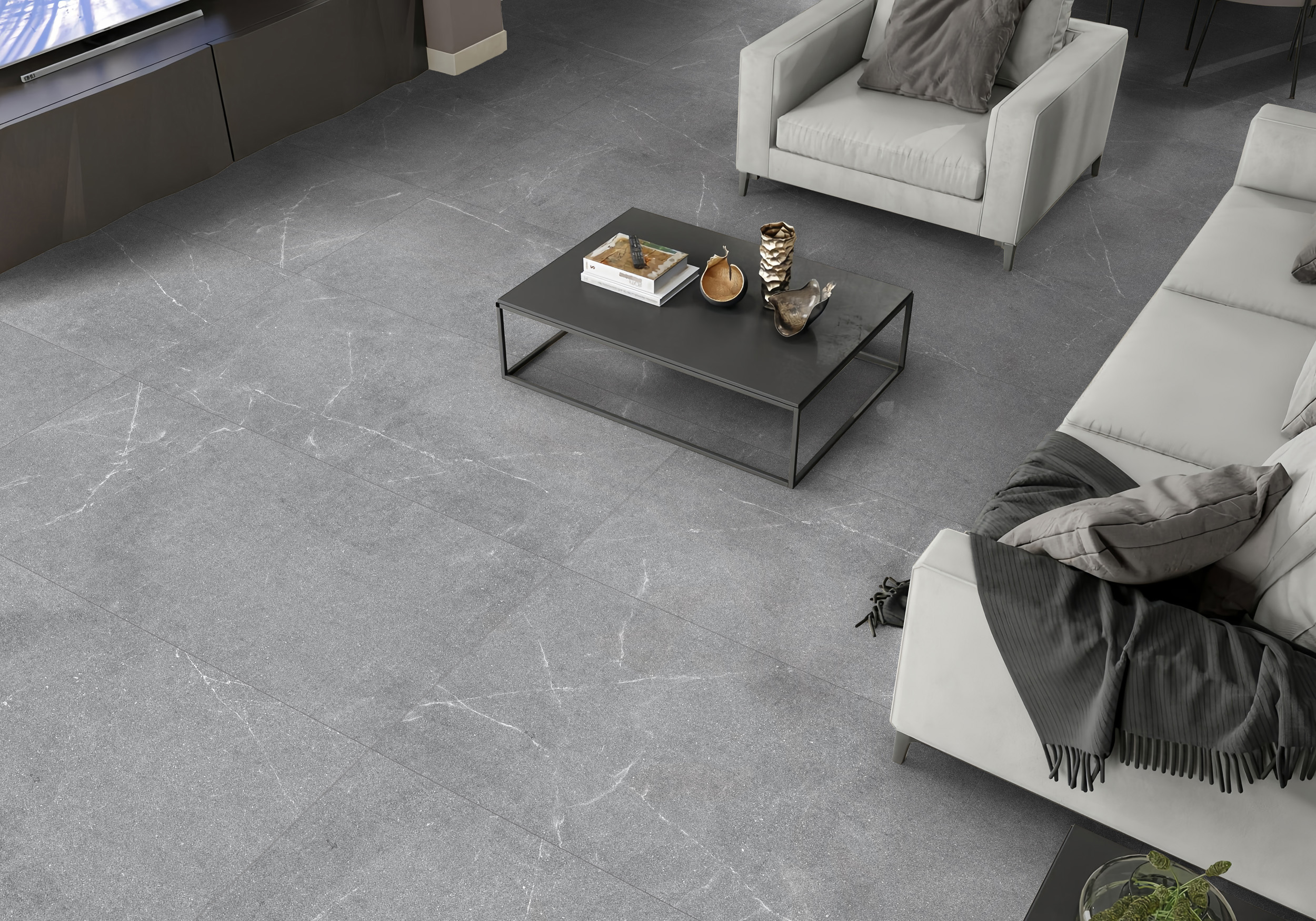 Керамогранит Geo – это гармоничное сочетание элегантности и современного дизайна. В коллекцию входит две позиции: базовая, которая станет прекрасным фоном для любых интерьеров, и плита с рельефной поверхностью в виде линий, обладающая структурой, способной акцентировать внимание и создавать визуальные акценты. Матовая поверхность не только придает плите особую надежность и прочность, но и создает неповторимую атмосферу уюта в любом пространстве. Белые прожилки керамогранита Geo привнесут в интерьер атмосферу спокойствия, идеально подходя как для жилых, так и для коммерческих помещений. Эти поверхности прекрасно гармонируют с различными стилями оформления, от минимализма до скандинавского дизайна, что делает их универсальным выбором для дизайнеров и домовладельцев.