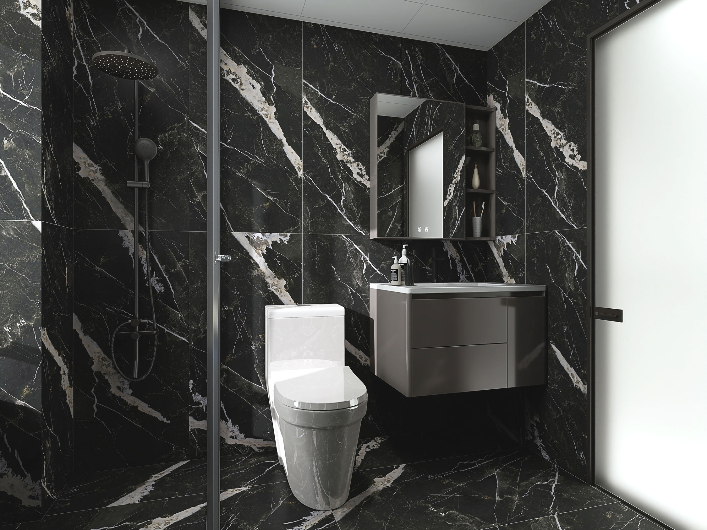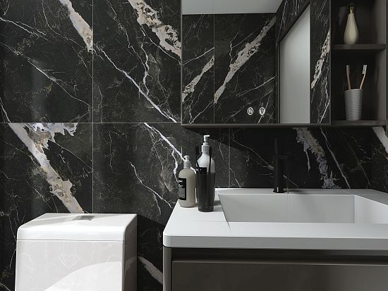Flame – это воплощение утонченности, имитирующее благородный мрамор. В сердце коллекции – глубокий, насыщенный черный цвет, который создаёт ощущение глубины и загадочности. Белые прожилки, словно реки, текут по черному полотну, создавая неповторимый рисунок на каждой плитке, их хаотичное расположение добавляет динамики, делая интерьер запоминающимся. Керамогранит легко сочетается с другими материалами и элементами декора. Коллекция гармонично смотрится с металлом, деревом и стеклом, позволяя создавать уникальные и стильные интерьеры. От минимализма до классики, Flame станет прекрасным дополнением любого дизайнерского решения, привнося в пространство атмосферу роскоши и комфорта.