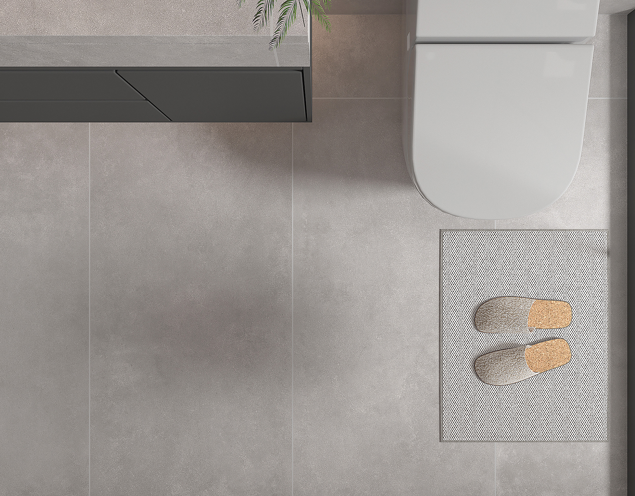 Infinium – это манифест современного дизайна, который смело объединяет красоту бетона и изящные мотивы природы. Три глянцевые, керамические плиты формата 30х60, имитирующие бетонную поверхность, задают тон всему пространству. Глянцевое покрытие придает плитке элегантность, играя отблесками света и визуально увеличивая пространство.
