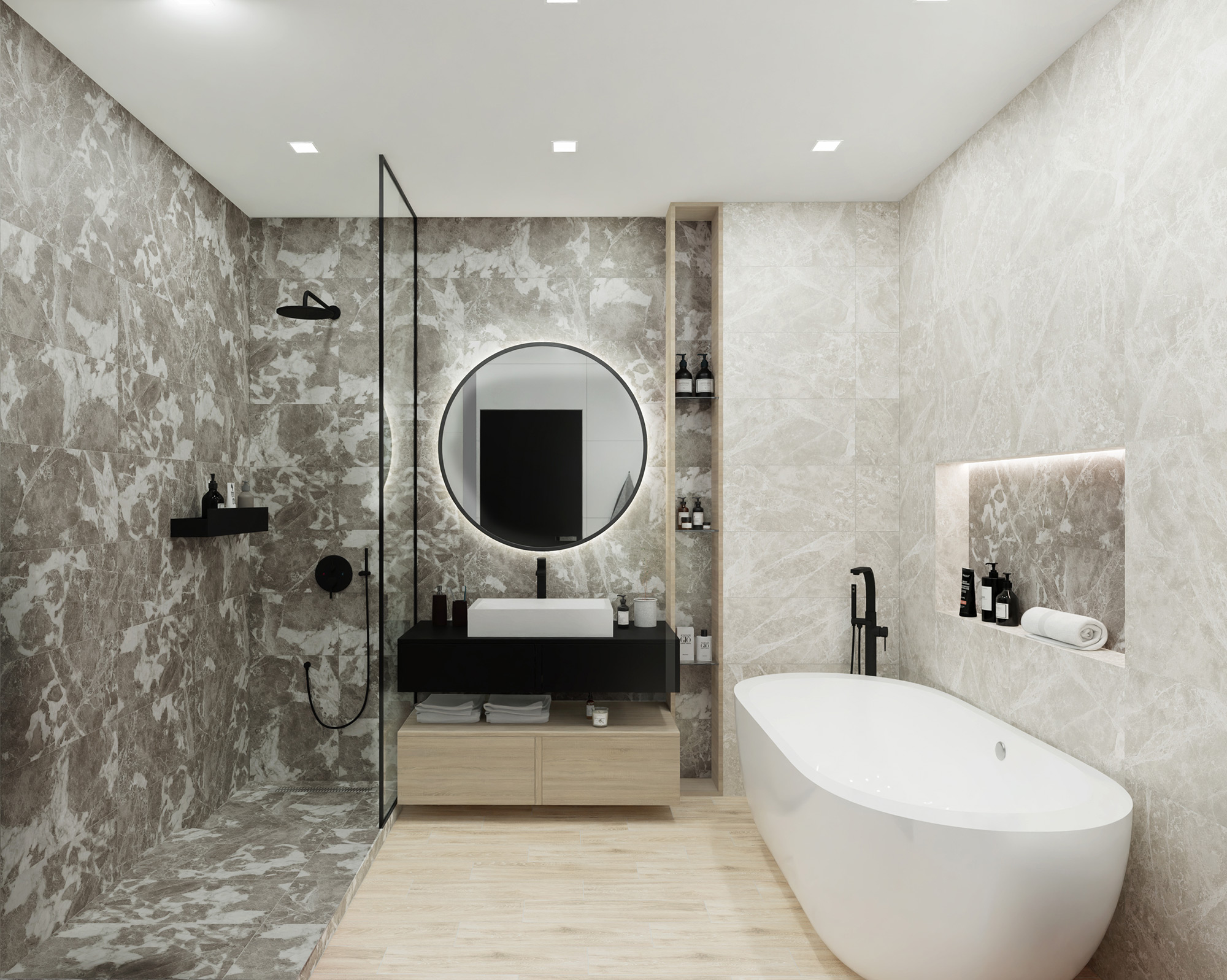 Мрамор безусловно является трендом в дизайне интерьеров уже несколько лет. Коллекция Action – это сочетания двух оттенков серого мрамора с неоднородным фоном, пронизанным паутиной белых прожилок. Нейтральная палитра базовых плит позволяют создать уютную атмосферу, наполненную благородством и спокойствием. Коллекция будет прекрасно сочетаться с деревом, бетоном и металлом.