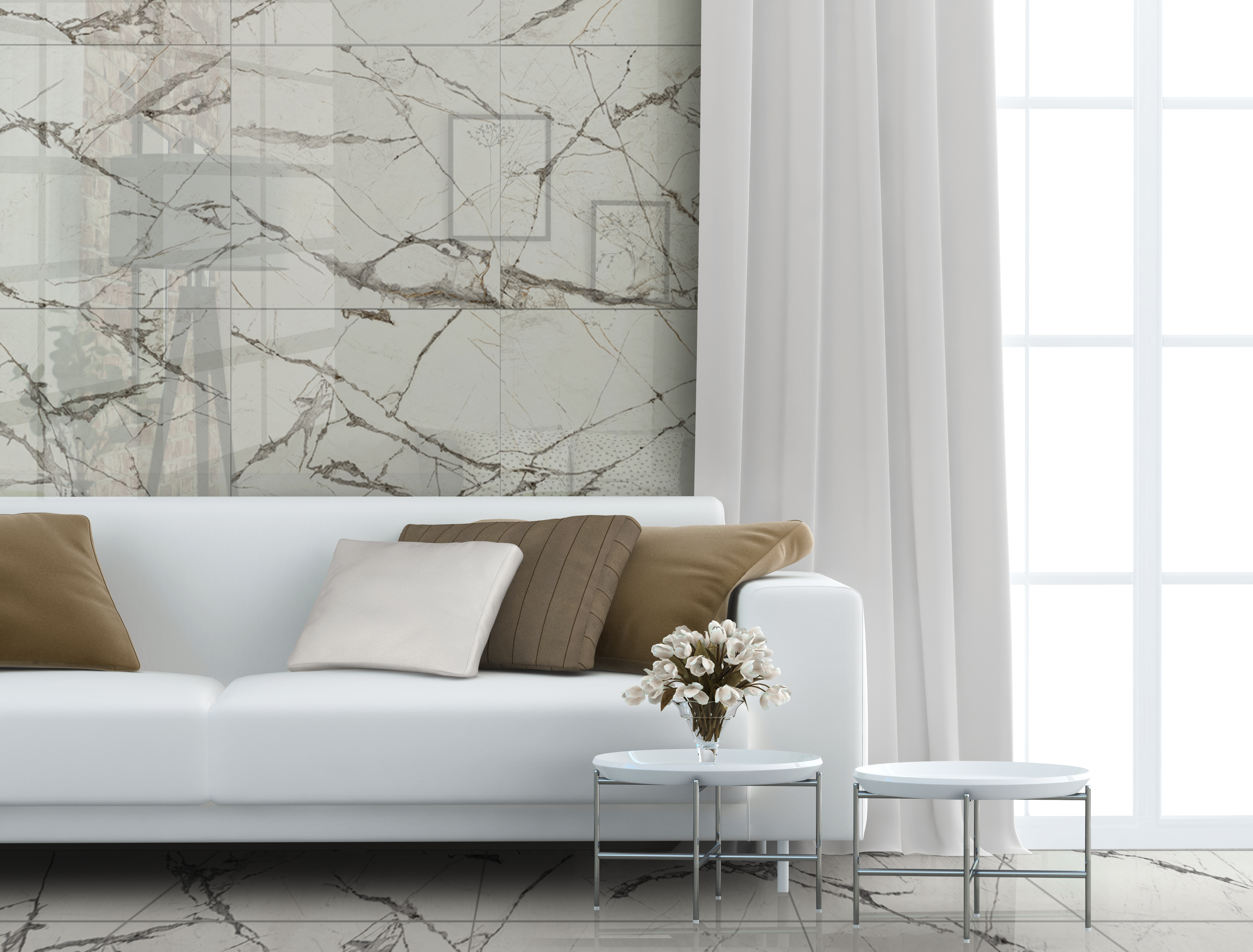 Коллекция керамогранита Timeline с имитацией натурального мрамора – отличное решение для тех, кто устал от визуального шума и калейдоскопа красок вокруг. Плиты имеют запоминающуюся текстуру – на бело-сером фоне четко видны коричневые прожилки, напоминающие изгибы молний, что придает рисунку динамичности. Вот почему он оказывает такой завораживающий эффект. Сочетание серых и коричневых тонов стойко ассоциируется с горами и землей, поэтому в интерьере керамогранит Timeline создает атмосферу спокойствия, незыблемости и защищенности.