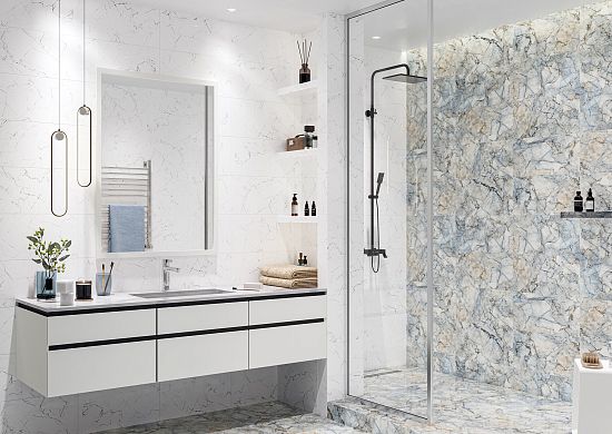 Керамогранит Solo воспроизводит изысканный жемчужно-серый мрамор со множеством белых прожилок, напоминающих блики воды на мелководье. Нежный рисунок позволяет создать атмосферу спокойствия и расслабленности, что особенно актуально для отделки ванной, спальни или гостиной. Универсальная расцветка хорошо сочетается как с нейтральными, так и с контрастными оттенками, позволяя разнообразить интерьер.