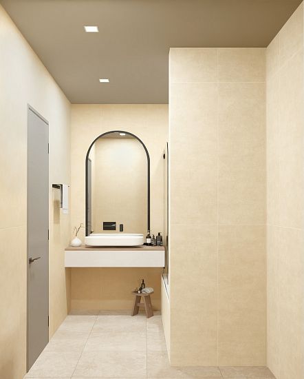 Коллекция Дуэт представлена в форматах 60×60 и 60×120 см, что позволяет реализовывать как компактные, так и масштабные интерьерные решения. Формат 60×120 подчёркивает цельность бетонной поверхности и визуально расширяет пространство, а 60×60 обеспечивает удобство укладки и универсальность применения. Фактура вдохновлена современной бетонной эстетикой — спокойной, лаконичной и архитектурной. Поверхность отличается мягкой минеральной текстурой и деликатной неоднородностью, создающей естественный эффект живого материала без излишней графической активности.
