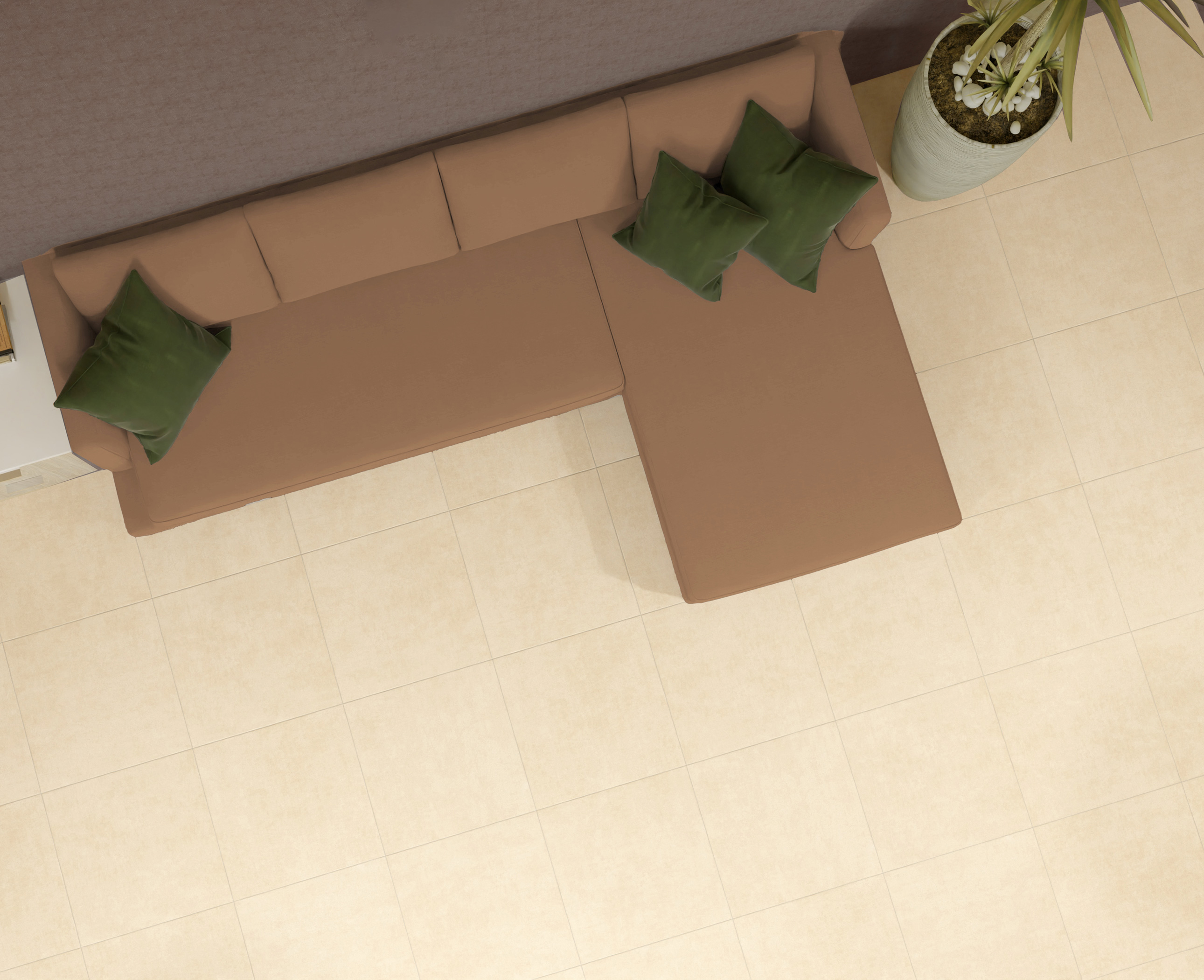 Коллекция Дуэт представлена в форматах 60×60 и 60×120 см, что позволяет реализовывать как компактные, так и масштабные интерьерные решения. Формат 60×120 подчёркивает цельность бетонной поверхности и визуально расширяет пространство, а 60×60 обеспечивает удобство укладки и универсальность применения. Фактура вдохновлена современной бетонной эстетикой — спокойной, лаконичной и архитектурной. Поверхность отличается мягкой минеральной текстурой и деликатной неоднородностью, создающей естественный эффект живого материала без излишней графической активности.