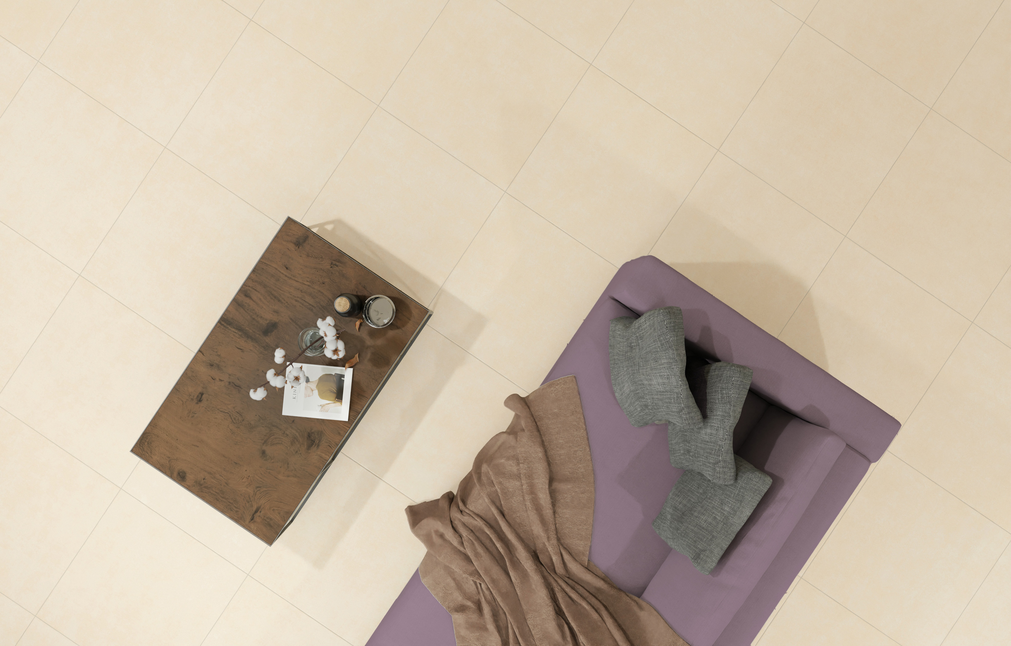 Коллекция Дуэт представлена в форматах 60×60 и 60×120 см, что позволяет реализовывать как компактные, так и масштабные интерьерные решения. Формат 60×120 подчёркивает цельность бетонной поверхности и визуально расширяет пространство, а 60×60 обеспечивает удобство укладки и универсальность применения. Фактура вдохновлена современной бетонной эстетикой — спокойной, лаконичной и архитектурной. Поверхность отличается мягкой минеральной текстурой и деликатной неоднородностью, создающей естественный эффект живого материала без излишней графической активности.