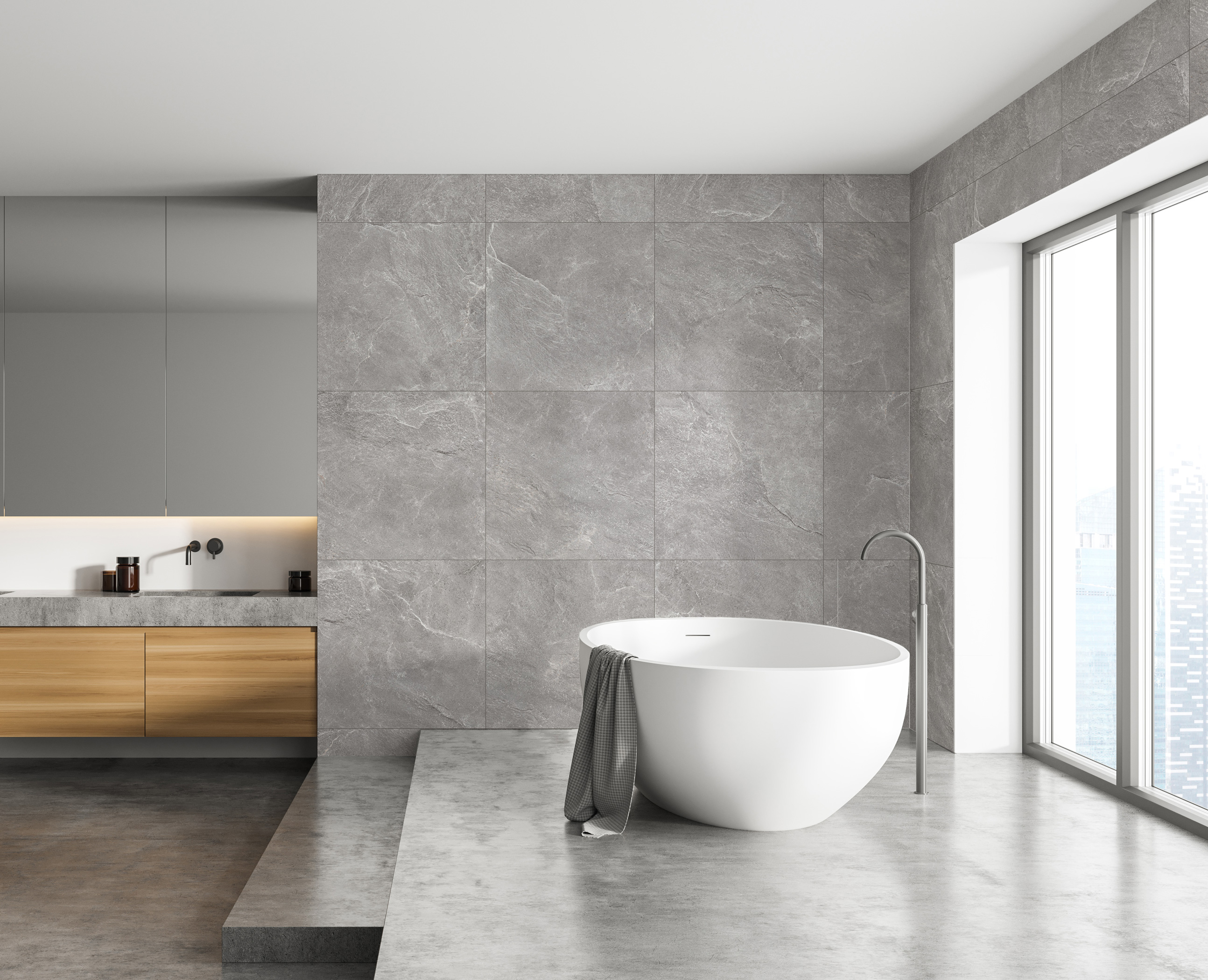 Коллекция Скала вдохновлена северным пейзажем, суровой красотой скал и мощью стихий. Плиты, словно выкованные природой, несут текстуру выраженного сланца: глубокий рельеф, тонкие слоистые прожилки. Глубокие, слегка шероховатые поверхности будто отшлифованы временем: графит и строгие оттенки серого, мягкая игра света на гранях слоёв — всё это создаёт ощущение благородной брутальности и первозданной мощи. Благодаря эффекту «сахар», поверхность плитки мягко и деликатно мерцает при попадании света — как утренний мороз на обнажённых скалах, отражающих первые лучи. При этом она остаётся фактурной и тактильной. Эта коллекция прекрасно впишется в минималистичные, лофт- или индустриальные пространства, а также станет акцентной деталью в интерьерных решениях, где ценится натуральность и сила природных материалов.