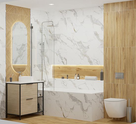 Керамогранит Calacatta Imperial, выполненный в благородно-сером цвете, искусно имитирует натуральный мрамор. Шелковистая на ощупь поверхность с крупными серыми прожилками и небольшими вкраплениями золота выглядит эффектно в любом интерьере, позволяя создать эстетичный функциональный дизайн. Благодаря новому удобному формату 40х80 коллекция Calacatta Imperial идеально подойдет для компактных ванных и кухонь, создавая атмосферу утонченности и комфорта.