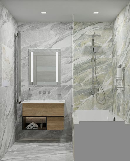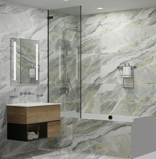 Изысканная текстура мрамора, искусно переданная в коллекции Mumbai, создает атмосферу утонченности в любом пространстве. Светло-зеленый оттенок привносит нотки свежести и природной гармонии, напоминая о прохладных оазисах и спокойствии тропических лесов. Серый цвет, напротив, излучает элегантность и сдержанность, подчеркивая современный минимализм и безупречный вкус. Матовая поверхность керамогранита Mumbai словно бархат окутывает пространство, а эффект цифровой глазури раскрывает глубину и многогранность текстуры.