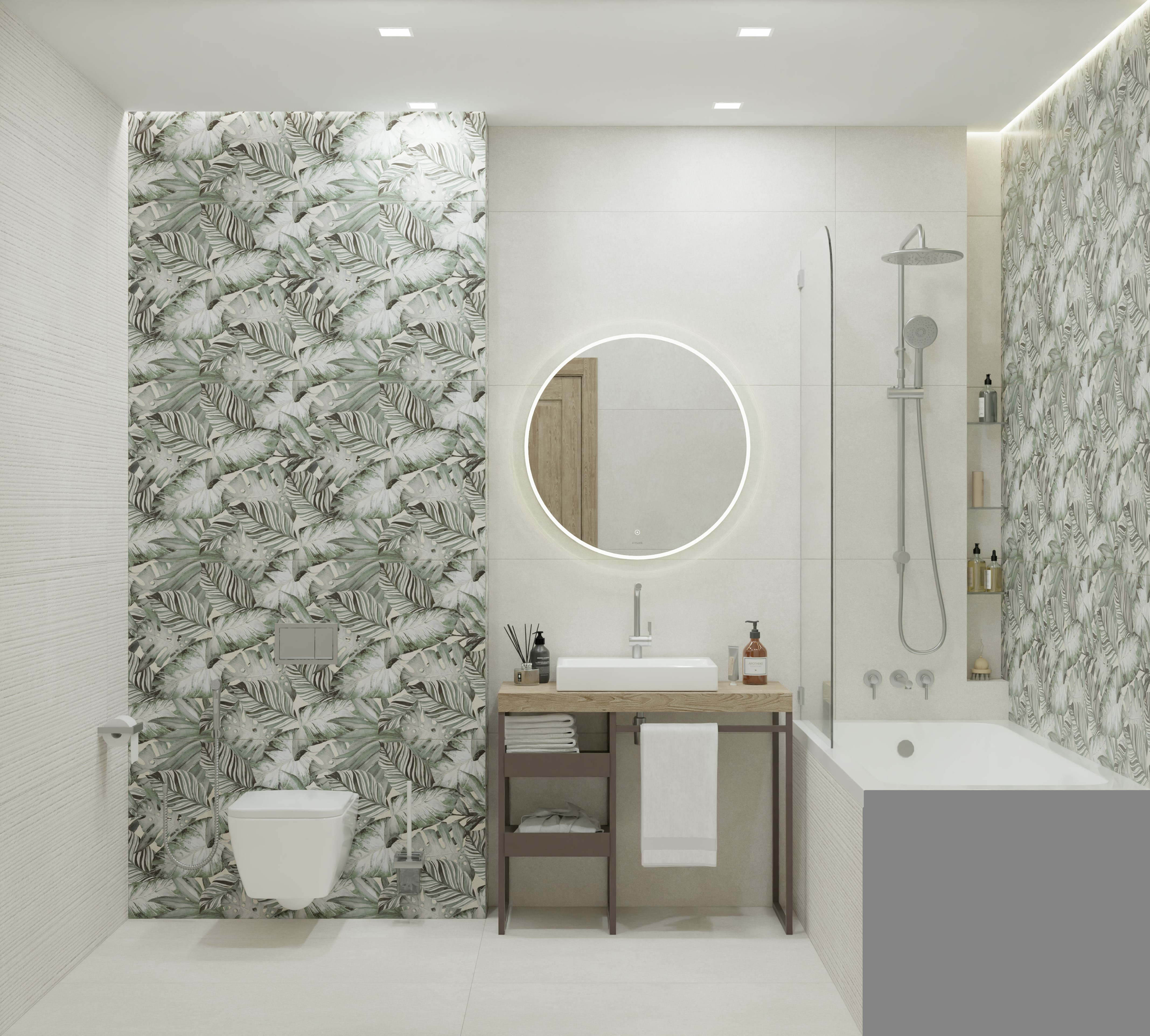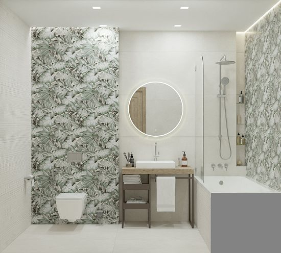 Тренд на ботанику в интерьере продолжает набирать популярность, особенно востребованы отделочные материалы с изображениями тропических растений. Коллекция керамогранита Tropical – это спокойные цветовые решения, где принт в виде крупных пальмовых ветвей создает атмосферу уюта и отдыха, как на райском острове. Благодаря сочным оттенкам от светло-зеленого до изумрудного, пространство будто наполняется воздухом. Это идеальный выбор для оформления ванной, кухни или спальни, где пальмовые листья будут выглядеть особенно гармонично и стильно.